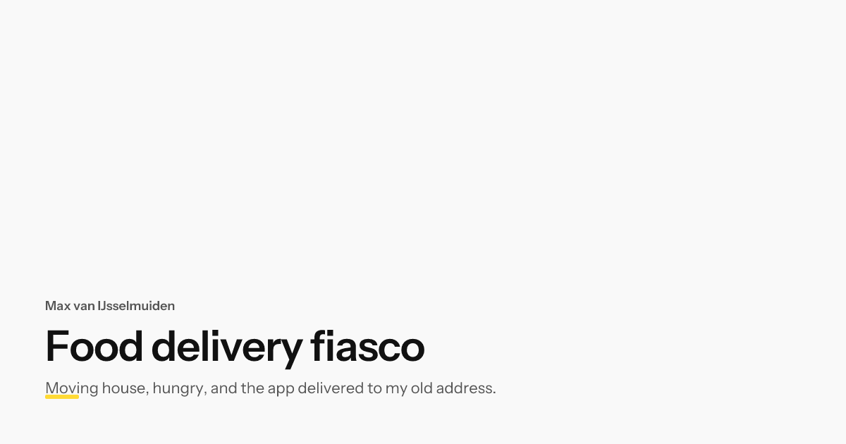 You recently moved house, after a day of hard work, renovating with a friend - you pick the easy food route. After all, both of you are exhausted and the kitchen isn’t even close to being useful. You’re going to order some food online.